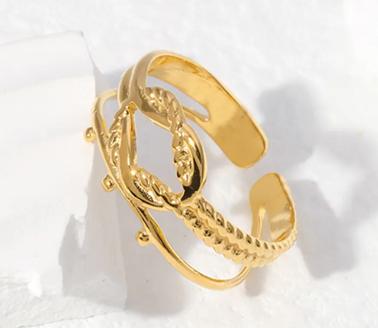 SORTIJA AJUSTABLE EN STAINLESS STEEL DORADO DISEÑO DE HOJAS